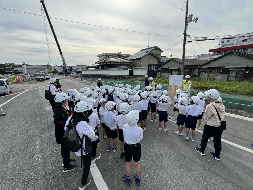 2025年10月30日(木)、下関市立小月小学校の1年生・2年生の児童77名と先生6名が、山口県発注、日本ファブテック株式会社・UBEマシナリー株式会社共同企業体(JV)が元請を務める「下小月第3高架橋 橋梁架設工事」の現場を見学しました。